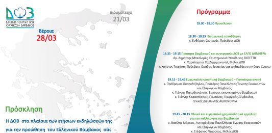 Στη Βέροια η επόμενη εσπερίδα της ΔΟΒ για την ποιότητα του ελληνικού βαμβακιού